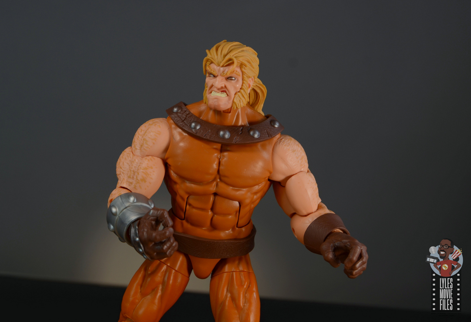 All of the signature AOA X-Men elements are included specifically the studded collar. His right wrist has some armor plating since that was the hand he predominantly held the chain that kept Wild Child leashed.