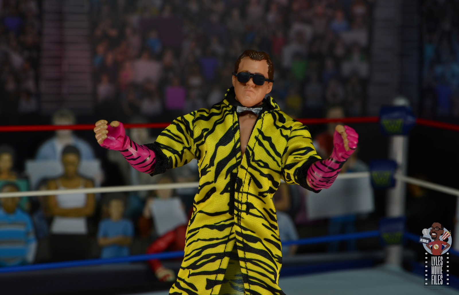 I’m most impressed with the work on his entrance robe. It’s bright yellow with tiger stripes and black collar. The robe was 80s style with short banded sleeves that Mattel accurately replicated. That’s nice attention to detail.