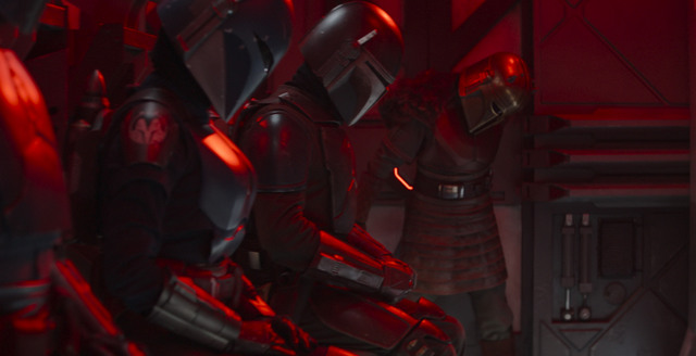 Things got off to a bit of an odd start as Bo-Katan and her crew were being pursued by Moff Gideon’s beskar stormtroopers. This again calls into question the need for Paz Vizsla’s questionable sacrifice since he would have been more effective bottlenecking the troopers in the hole Bo-Katan created instead of fighting them in the open hangar area. Still, Paz killed off all the troopers before getting killed by the Praetorian Guards. Ideally they’d be the ones chasing Bo and crew only to get cut off by the bombs she and Koska placed.