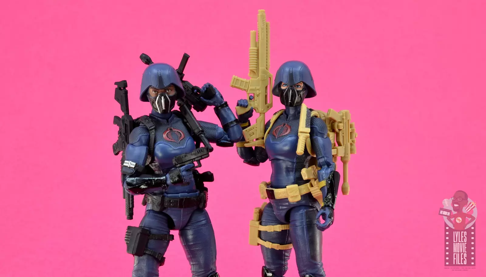 The only difference with the two is one has the tan harness gear like the early Cobra Trooper look in the comic book. This does allow for a bit more color pops than the standard black web gear with accent points in the sheath, belt and boots.