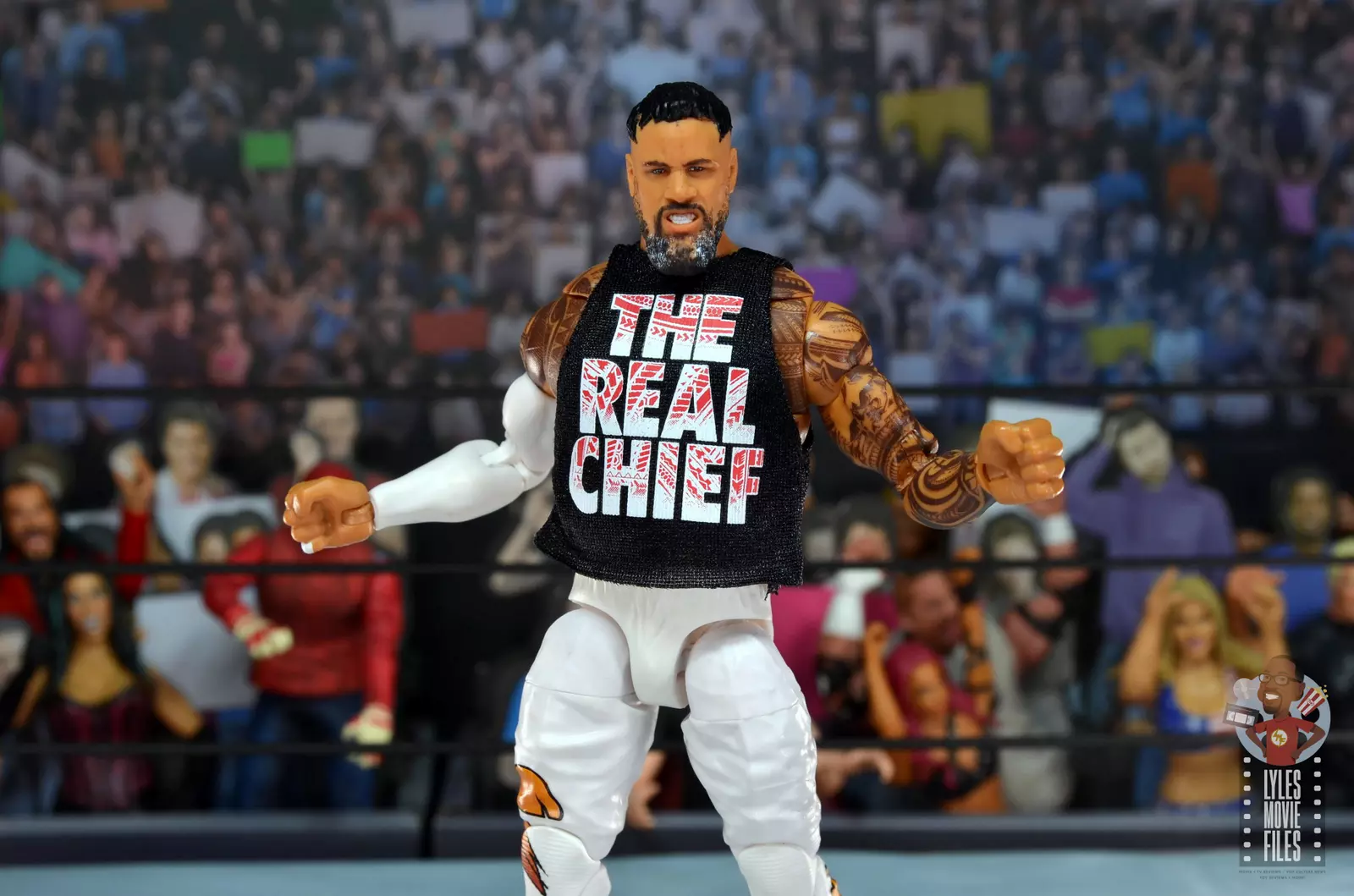 Scale: Jey is 6’2” putting him at the same height as his little brother Solo Sikoa and close ally Cody Rhodes. That makes them both an inch shorter than their brother Jimmy Uso, and cousin Roman Reigns. The UE figure matches up pretty well compared to Roman and The Wise Man.