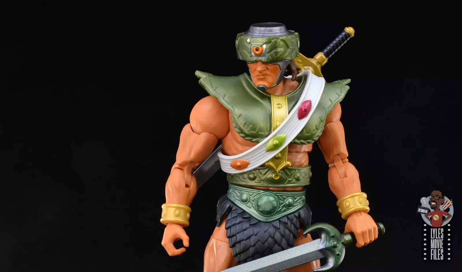 He also has an extra sword with a more detailed golden hilt that also includes a large eye in the center and two smaller ones on either side. That’s a nice touch and way to stay on brand for Tri-Klops.