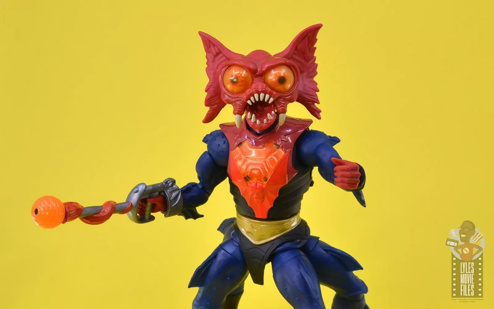 Likeness: Similar to the rest of the Evil Horde, Mantenna looks monstrous in a way that eclipses Skeletor’s Evil Warriors. He’s got a really gruesome head sculpt with the bat-like huge ears and his lamprey-style mouth with the sharp fangs. The sculpt looks even cooler since all of the teeth aren’t the same length. Some of small, others are medium size, and others are especially long.